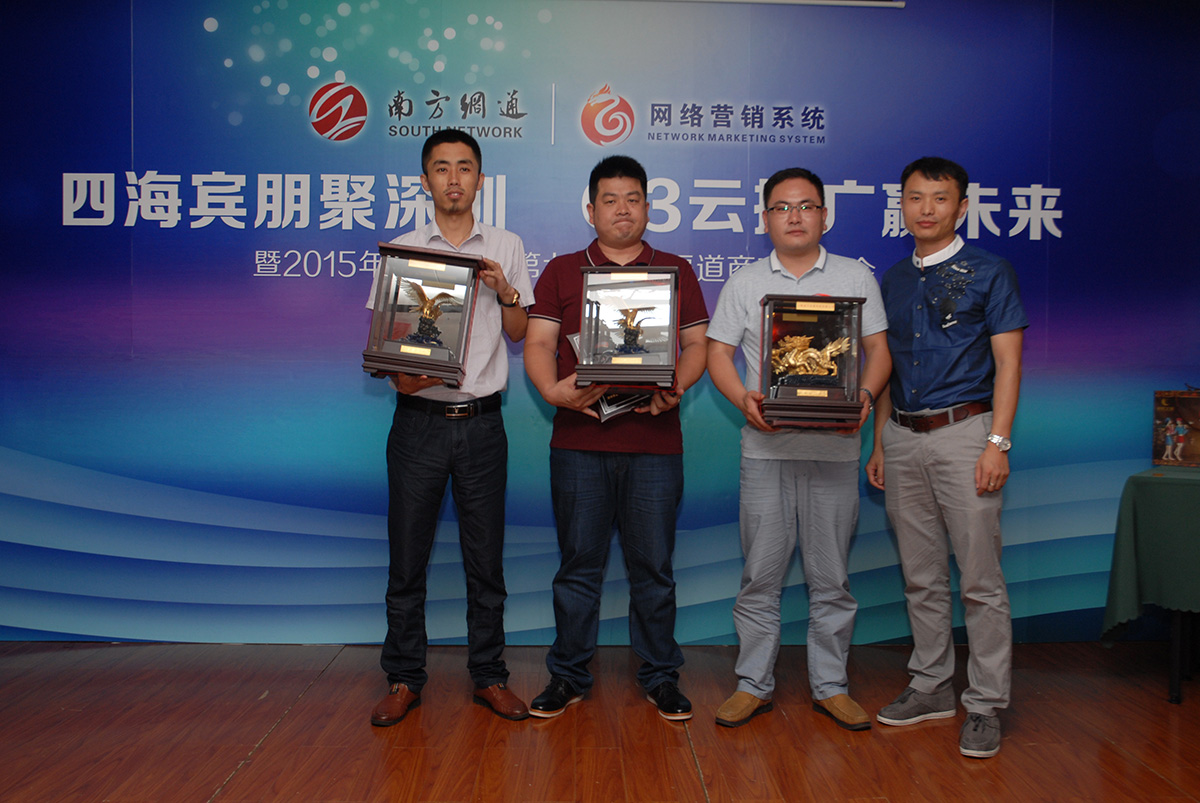 南方網(wǎng)通渠道部總監(jiān)——梁金凱給北京賽偶吳總、南京樂識(shí)王總、滄州林科張總頒發(fā)優(yōu)質(zhì)渠道商獎(jiǎng)